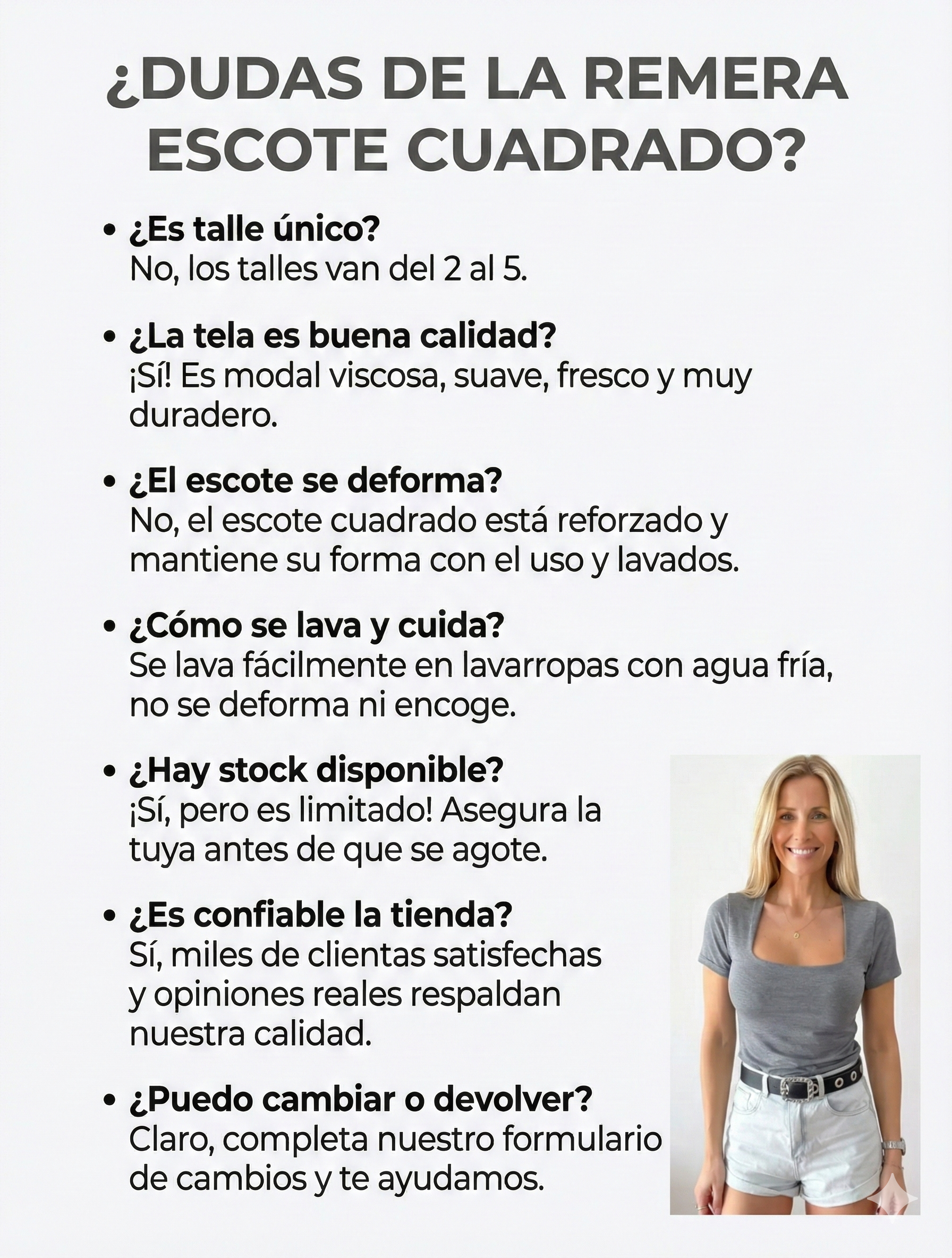 • Diseño delicado con cuello cuadrado, femenino y versátil
