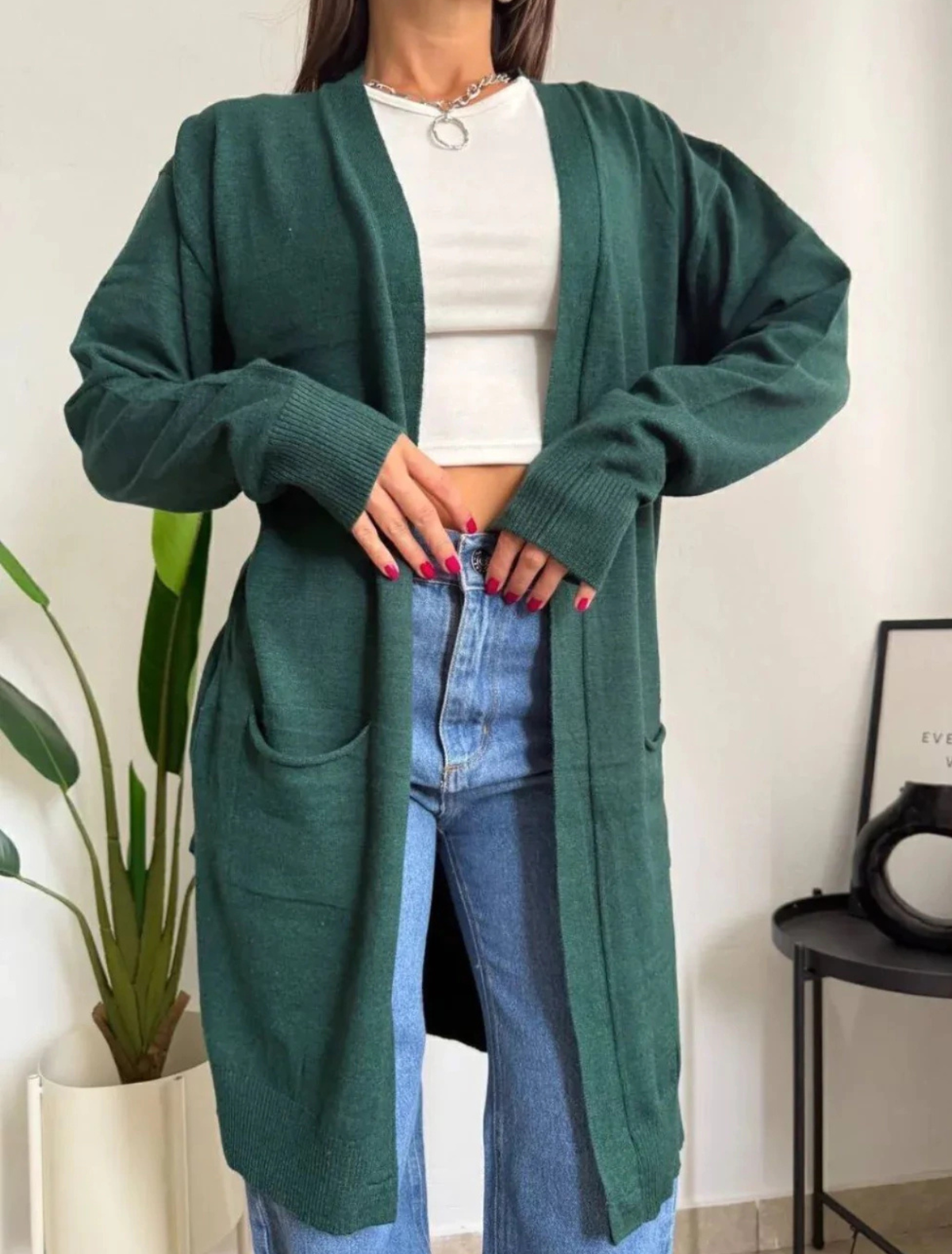 Un saco largo cómodo y versátil que suma abrigo y elegancia al look diario. El tejido bremer aporta suavidad y una caída natural, ideal para completar outfits de forma prolija sin esfuerzo.