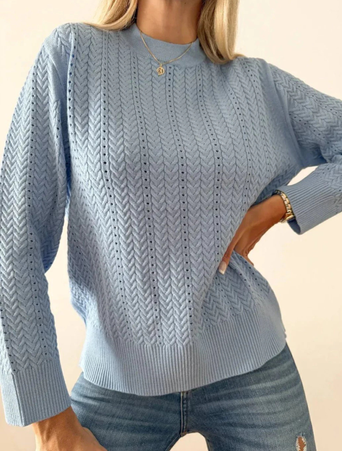 Un sweater cómodo y versátil que te acompaña en los días frescos con un estilo simple y prolijo. El tejido bremer aporta suavidad y abrigo liviano, ideal para usar todos los días.